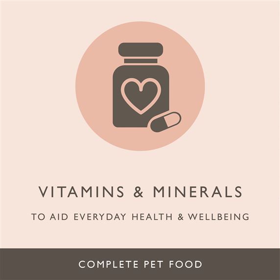 Crude Protein 24%, Crude Fat 8%, Crude Fibre 3.5%, Crude Ash 5.5%, Moisture 8%, NFE 51%, Metabolisable Energy 348 kcal/100g, Omega 6 Fatty Acids 1.95%, Omega 3 Fatty Acids 0.25%, Calcium 1.5%, Phosphorus 0.9%